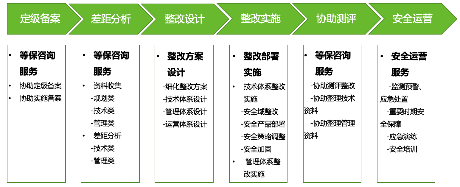 靈狐科技提供等級保護2.0全流程解決方案,在定級、備案、建設(shè)整改、等級測評、安全運營階段,提供專業(yè)的等保咨詢服務(wù)、安全防護產(chǎn)品、安全技術(shù)服務(wù)、安全運營服務(wù),讓單位在等級保護建設(shè)中省時、省心、省力。